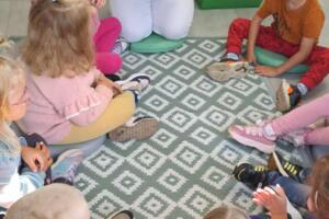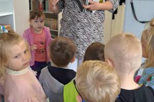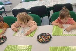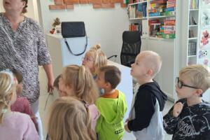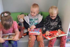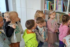 Dnia 12 września 2025r. dzieci z grupy „Sówki” odwiedziły bibliotekę osiedlową „Wojtki”. Spotkanie było pełne radości, ciekawości i pierwszych kroków w świat książek. Przedszkolaki z dużym zainteresowaniem wysłuchały opowieści bibliotekarki o tym, jak powstają książki i jak należy się z nimi obchodzić. Dzieci miały okazję obejrzeć kolorowe bajki, atlasy i pierwsze encyklopedie. Największe wrażenie zrobiło na maluchach głośne czytanie ulubionej bajki oraz możliwość samodzielnego wyboru książeczek z półek. Spotkanie zakończyło się wspólnym kolorowaniem wybranej przez siebie kolorowanki. Takie wizyty to doskonała okazja, aby od najmłodszych lat zaszczepiać w dzieciach miłość do książek i pokazywać, że biblioteka to miejsce przyjazne, otwarte i pełne niesamowitych przygód.