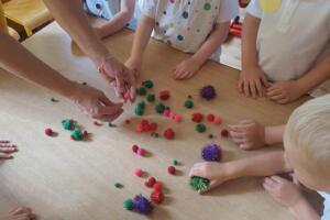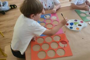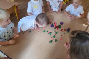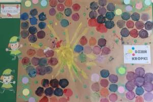 Dnia 15 września 2025 r. dzieci z grupy Krasnoludki z okazji Międzynarodowego Dnia Kropki wysłuchały bajki o Vashti, dziewczynce która dzięki jednej kropce odkryła w sobie talent i uwierzyła, że każdy ma w sobie coś wyjątkowego. Podczas zabawy dzieci usprawniały aparat mowy ćwiczeniami oddechowymi i namalowały farbami wspólny kolorowy plakat. Z radością brały udział w zabawach z „Kropką”.
