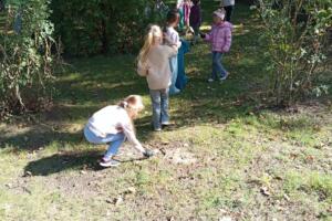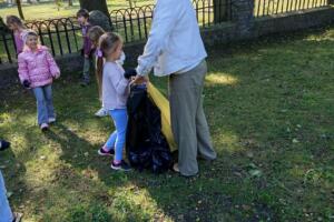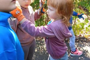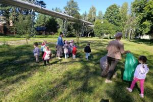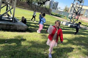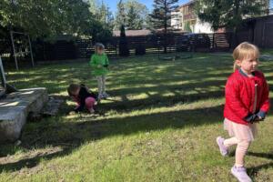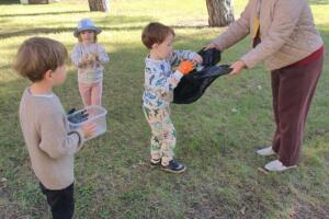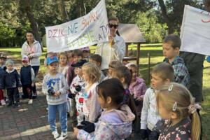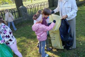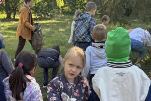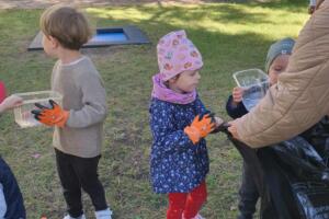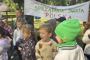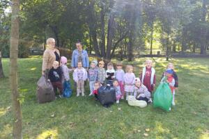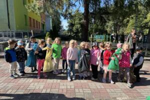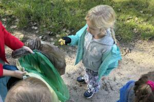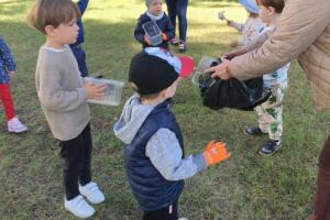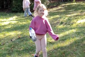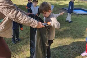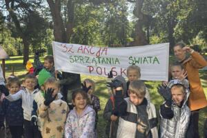 Dnia 18 września 2025 r. cała społeczność „Leśnej Krainy” wzięła udział w 32 Akcji Sprzątania Świata. W tym celu wybraliśmy się na pobliskie tereny zielone- park, skwerek, plac zabaw, aby zadbać o czystość okolicy. Wrzucały „znaleziska” do worków w odpowiednich kolorach, dzięki czemu przypomniały sobie zasady segregacji śmieci. Wszyscy aktywnie spędzili czas na świeżym powietrzu.
