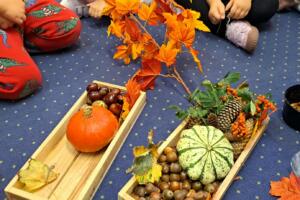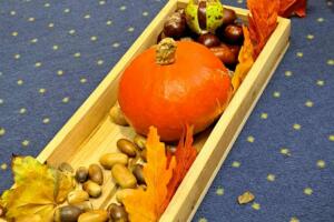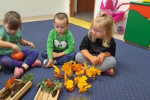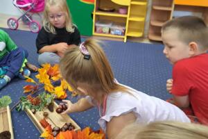 Dnia 25 września 2025 r. przedszkolaki z gr. Sówki postanowiły zatrzymać odrobinę jesiennej atmosfery w sali, tworząc wspólnie kącik jesienny. Dzieci z wielkim zaangażowaniem gromadziły dary jesieni – przyniosły do przedszkola kasztany, żołędzie, kolorowe liście, dynie, jarzębinę i szyszki. Dzięki temu nasz kącik wzbogacił się o różnorodne elementy, które pozwalają dzieciom na codzienne obserwacje i zabawy badawcze. Wspólnie rozmawialiśmy o zmianach zachodzących w przyrodzie o tej porze roku. Przedszkolaki dowiedziały się, dlaczego liście zmieniają barwy, czemu zwierzęta gromadzą zapasy i jak rośliny przygotowują się do zimy. Dzieci chętnie dotykały i oglądały przyniesione okazy, rozwijając swoje zmysły oraz ciekawość świata.