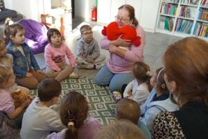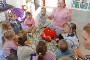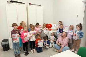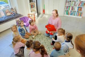 Dnia 1 października 2025 r. dzieci z grupy „Jeżyki” wzięły udział w zajęciu bibliotecznym w ramach Ogólnopolskiej Akcji Czytelniczej. Poznały maskotkę akcji- Hertusia, rozmawiały na temat profilaktyki zdrowotnej serca, wykonywały różnorodne ćwiczenia, i wykonały piękne prace plastyczne.