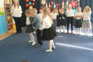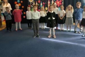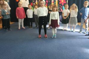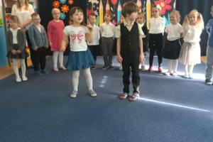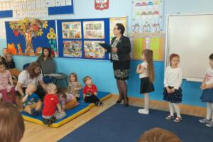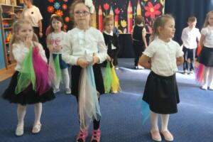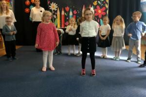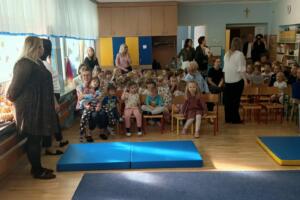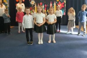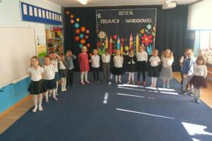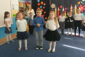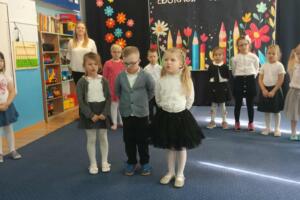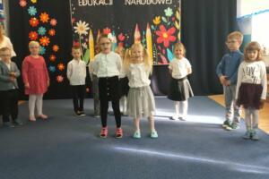 Dzień Edukacji Narodowej to wyjątkowy dzień dla wszystkich pracowników oświaty. Nasze przedszkolaki również chciały podziękować w tym dniu, swoim ukochanym paniom i pracownikom przedszkola za uśmiech, życzliwość i trud włożony w ich wychowanie, za opiekę, dobre rady, czyste sale, wszelkie naprawy oraz smaczne posiłki. Słowa tych podziękowań zawarte były w wierszach, piosenkach i tańcach, przygotowanych przez dzieci z grupy Jeżyki. Za ciekawy i udany występ przedszkolaki zostały nagrodzone gromkimi brawami.
