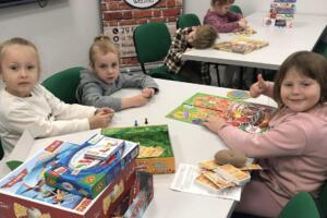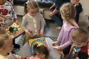 Dnia 10 października 2025 r. przedszkolaki z gr. Motylki wybrały się do biblioteki osiedlowej „Wojtki”, gdzie odbył się Dzień Gier Planszowych. Celem akcji jest popularyzacja gier planszowych jako formy rozrywki rozwijającej intelekt, wspierające budowanie relacji międzyludzkich. Dzieci bardzo chętnie uczestniczyły w zabawie, były radosne.