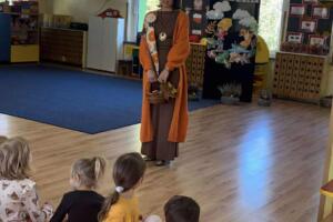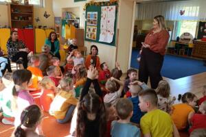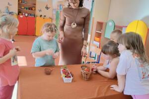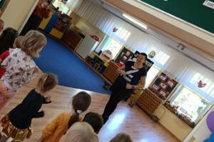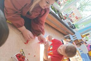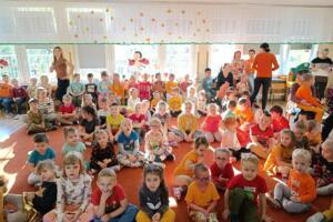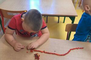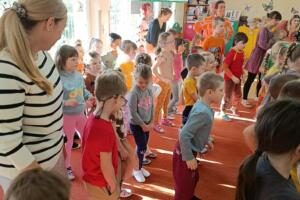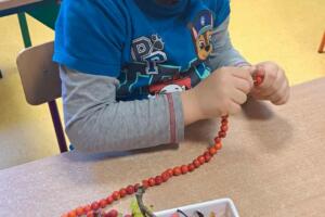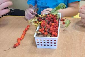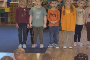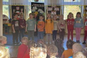 Dnia 21 października 2025 r. z wizytą w naszym przedszkolu była Pani Jesień. Przyniosła ze sobą dużo radości, uśmiech, zabawy. Ćwiczyliśmy z Panią Jesienią nie tylko umysł poprzez rozwiązywanie quizu ale i ciało poprze gimnastykę i Zumbę. Na koniec dzieciaki z jarzębiny zrobiły korale, które podarowały jej w podziękowaniu za wspólnie spędzone chwile.