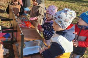 W ostatnim czasie nasze przedszkole zostało wyposażone w nowy sprzęt, który będzie służył dzieciom podczas zabaw w ogrodzie przedszkolnym, czyli w kuchnię błotną. Została ona zakupiona przy wsparciu Urzędu Miasta Ostrołęki. Dzięki niej przedszkolaki będą mogły rozwijać wyobraźnię, kreatywność, umiejętności manualne i społeczne. Zabawy w kuchni błotnej wspierają również rozwój fizyczny i poznawczy. Dodatkowo, może mieć to korzystny wpływ na rozwój zdrowego układu odpornościowego poprzez kontakt z naturalnymi bakteriami, a sama zabawa może być świetną formą spędzania czasu na świeżym powietrzu. Mamy nadzieję, że zabawa w kuchni błotnej przyniesie dzieciom zarówno korzyści zdrowotne, jak również czerpanie radości z zabawy.