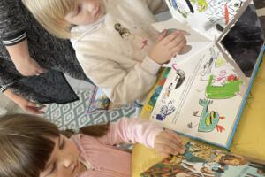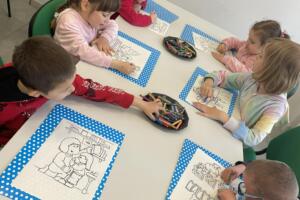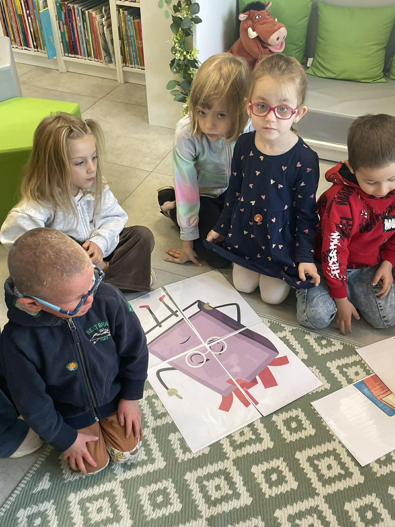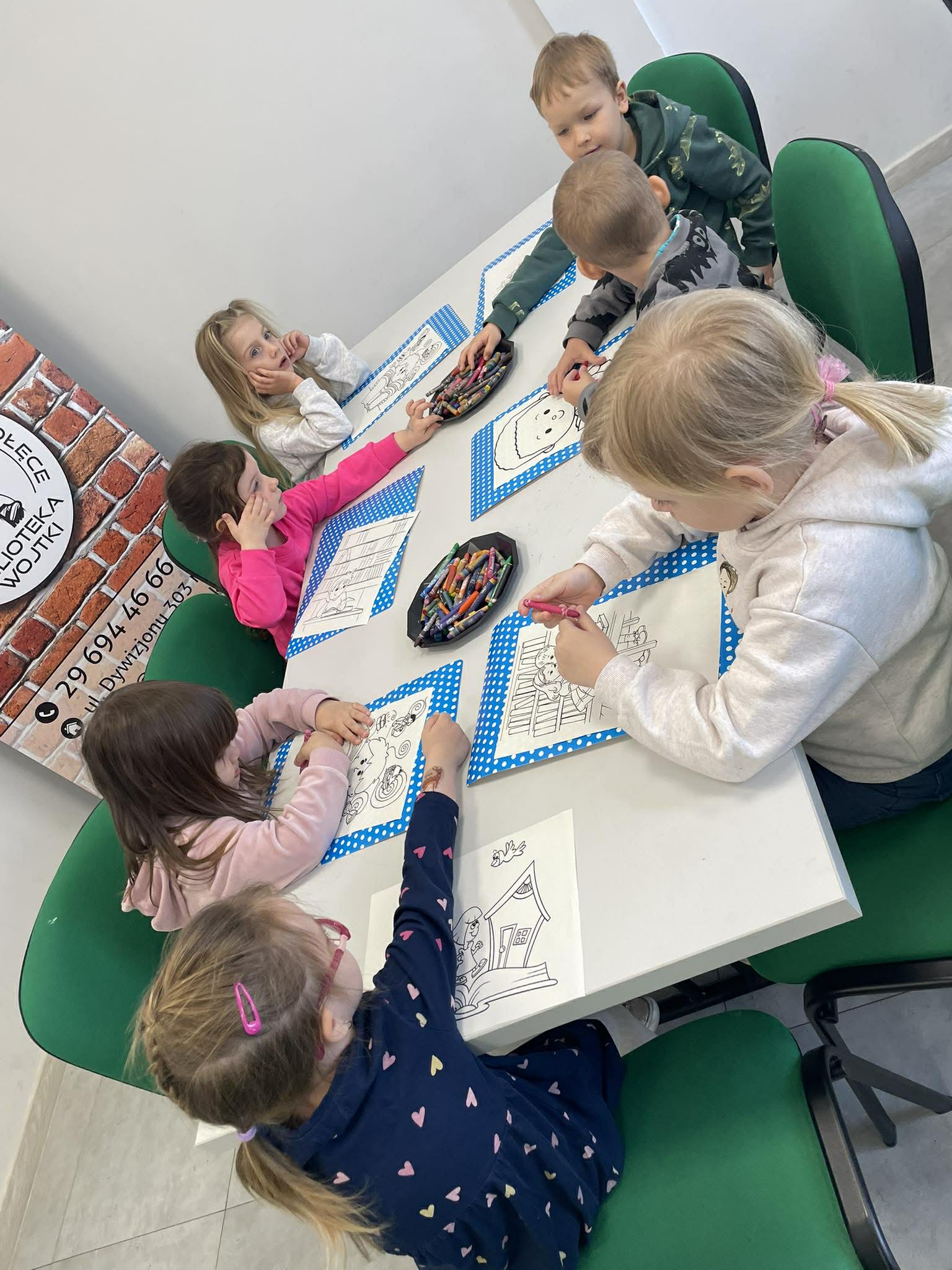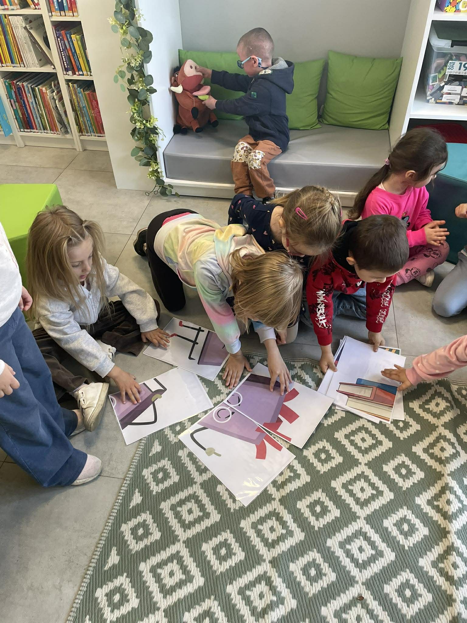 Dnia 10 kwietnia 2026 r. przedszkolaki z gr. Muchomorki, w ramach realizacjo tygodniowego tematu pod hasłem „Z książką za pan brat” wybrały się na warsztaty literackie do Biblioteki Osiedlowej „Wojtki”. Pani bibliotekarka zapoznała przedszkolaki z najnowszymi pozycjami z literatury dziecięcej, opowiedziała im jak powstają książki oraz przypomniała zasady dbania o nie. Podczas spotkania dzieci uczestniczyły również w zabawach animacyjnych oraz warsztatach plastycznych. Było wesoło, energicznie i twórczo.