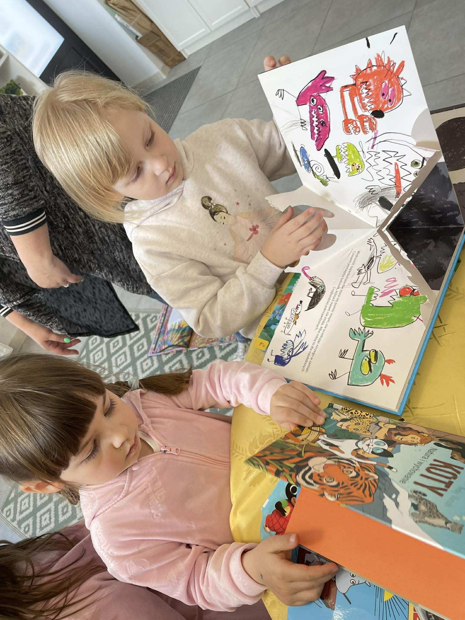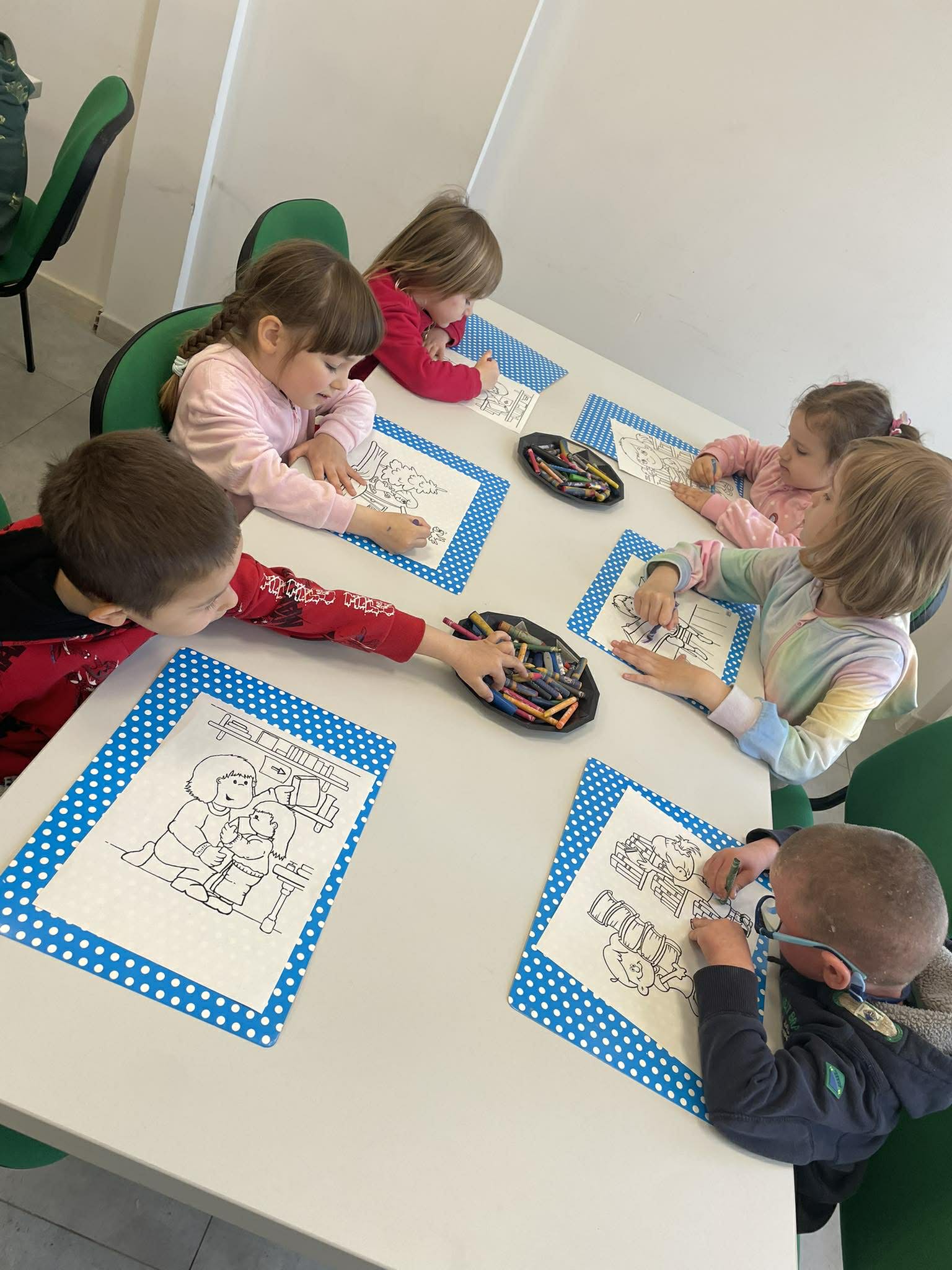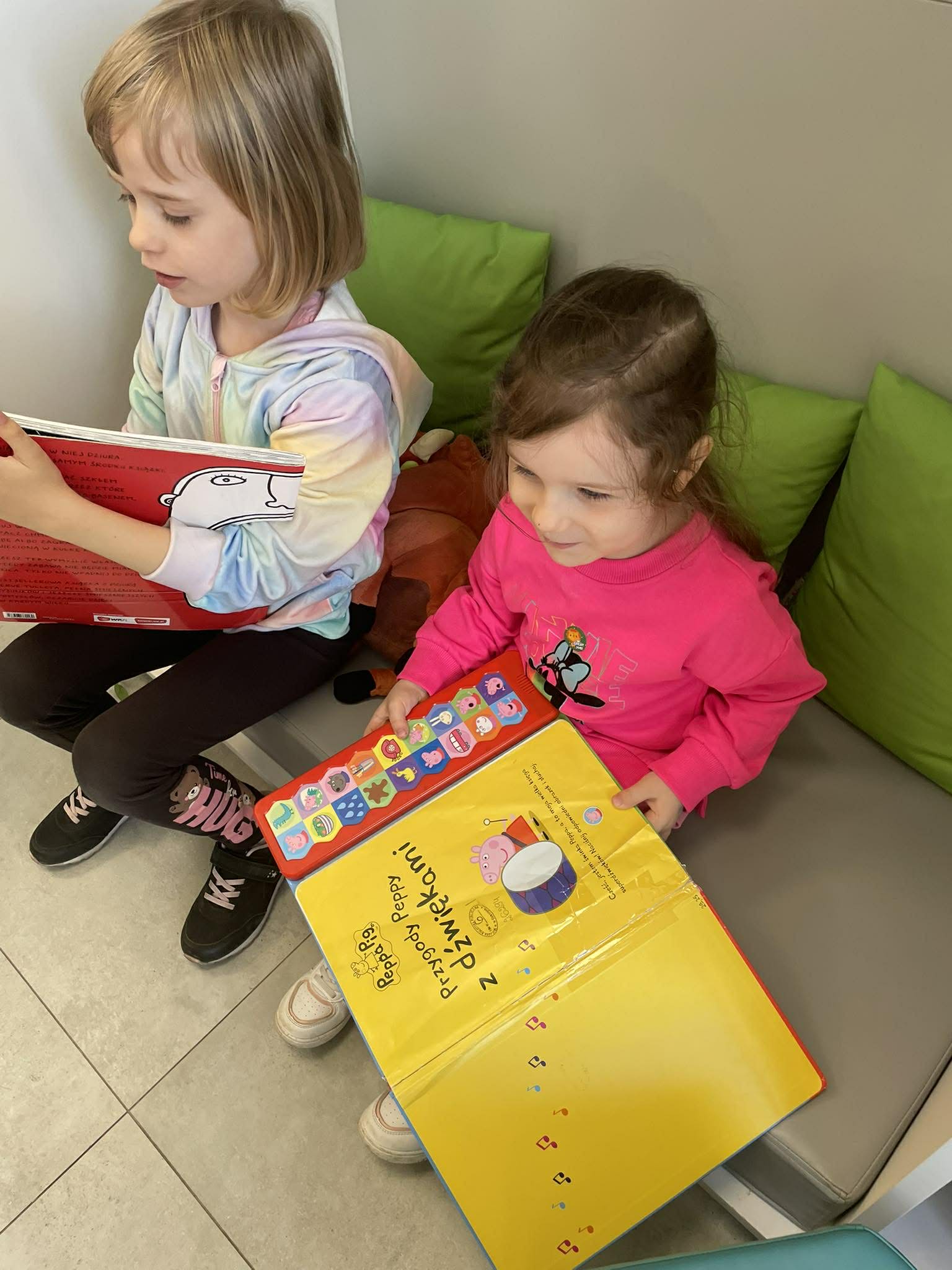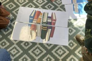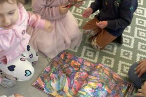 Dnia 10 kwietnia 2026 r. przedszkolaki z gr. Muchomorki, w ramach realizacjo tygodniowego tematu pod hasłem „Z książką za pan brat” wybrały się na warsztaty literackie do Biblioteki Osiedlowej „Wojtki”. Pani bibliotekarka zapoznała przedszkolaki z najnowszymi pozycjami z literatury dziecięcej, opowiedziała im jak powstają książki oraz przypomniała zasady dbania o nie. Podczas spotkania dzieci uczestniczyły również w zabawach animacyjnych oraz warsztatach plastycznych. Było wesoło, energicznie i twórczo.